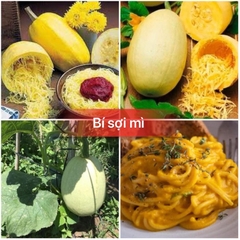 Bí mì sợi sẽ là một sản phẩm không thể thiếu trong khu vườn của bạn đó. tên tiếng anh là Spaghetti squash - hay vegetable spaghetti (mì spaghetti rau) là một nhánh của họ bí. Quả có màu ngà, màu vàng nhạt hoặc màu cam. khi chưa nấu thì bên trong quả bí trông như các quả bí khác. Nhưng khi nấu lên (nấu, nướng…) thì bên trong sẽ bung ra thành từng sợi như sợi mì. 100gram bí mì sợi chỉ có 31kcal và chất béo chỉ có 0.57g nên rất thích hợp để ăn kiêng. Khi nướng lên, trông như một tô mì ăn no mà vẫn không sợ tăng cân thì đúng là một món thích hợp để ăn kiêng. Bí mì sợi có thể nướng, luộc, hầm. Có thể ăn không hoặc nấu kèm với thịt, sốt, gia vị như nấu mì