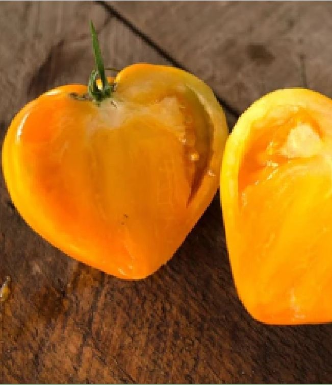 Hạt giống cà chua trái tim vàng cho quả sau 80 - 100 ngày trồng, quả có gân, màu vàng , nhiều thịt và ít hạt, vị ngọt và rất ngon. Cà chua trái tim vàng trồng tại nhà thường được thu hoạch lúc chín cây màu đỏ, vì lúc này có lượng chất khô hoà tan, vitamin C và lượng đường nhiều nhất.