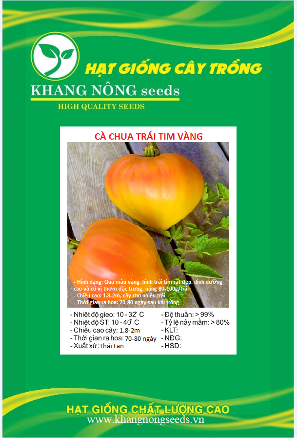 Cà chua hình trái tim Vàng nằm trong nhóm rau quả được yêu thích vì hình dáng độc lạ, quả có hình trái tim màu vàng rất đẹp. Bên cạnh đó việc gieo trồng hạt giống cà chua trái tim vàng lại đơn giản, không cần chăm sóc nhiều so với các giống cà chua khác.
