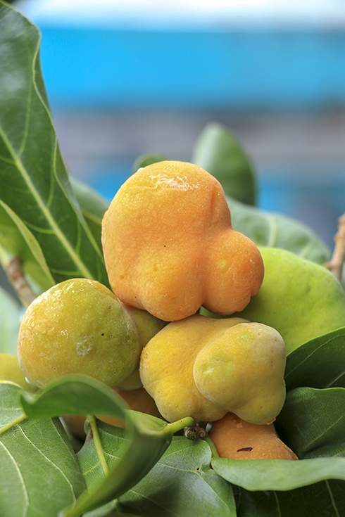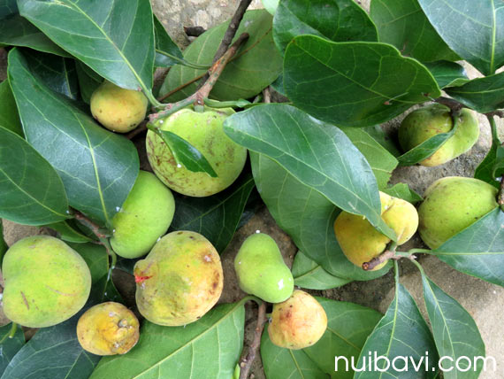 Mùa quả vào tháng 6, tháng 7, quả chay có hình hơi tròn nhưng không phẳng, có những phần lồi lên trông như những núm. Quả non màu xanh, khi chín màu vàng. Thịt quả có màu hồng mát mắt mềm, khi ăn có vị chua thanh.