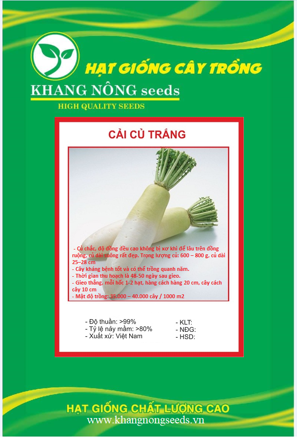 - Chọn mua hạt giống củ cải trắng tại các cửa hàng hay shop cung cấp hạt giống uy tín, đảm bảo tỷ lệ nảy mầm cao, cây sinh trưởng khỏe. Shop hạt giống Khang Nông Seeds là một gợi ý dành cho bạn.