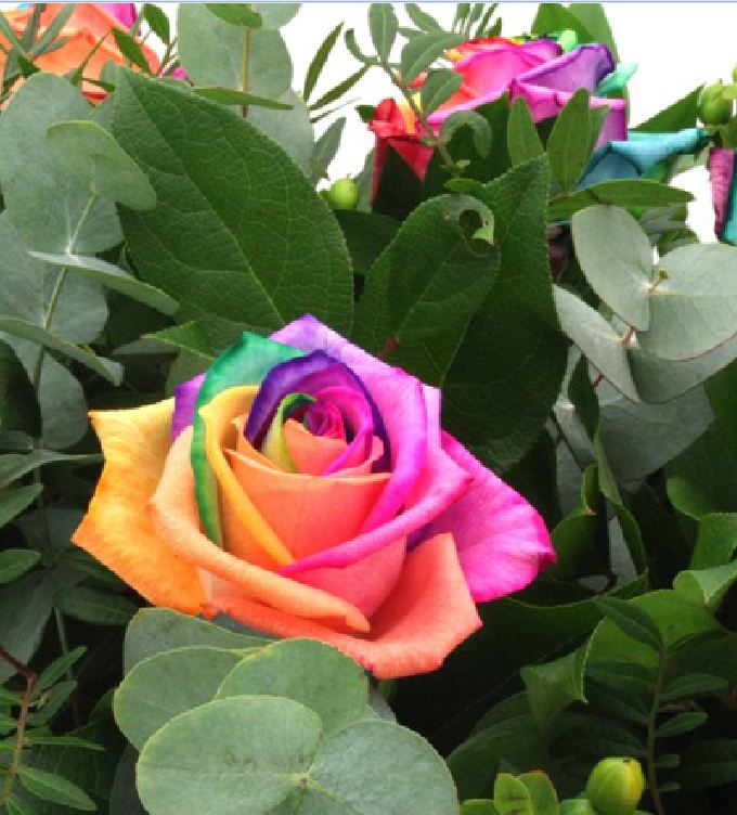 Hoa hồng bảy màu sản sinh ra loài hoa có mùi thơm ngọt, có thể giữ được độ tươi lâu giống các loài hoa hồng thông thường khác (nhưng lá nhanh héo hơn), hoa đã có mặt ở hầu hết các quốc gia trên khắp thế giới. Đặc biệt, tại thị trường Nhật Bản, Italia, Thụy Điển rất được ưa chuộng, nhất là tại Thụy Điển bởi hoa có màu vàng và xanh trùng với màu cờ đất nước họ.
