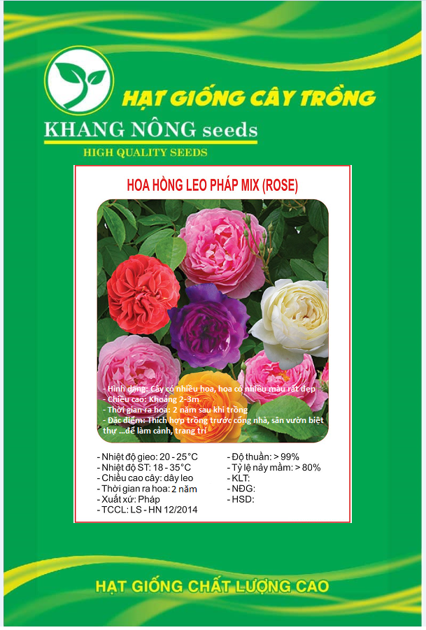Hạt Giống Hoa hồng leo Pháp hay còn gọi là cây hồng dây, luôn nằm trong top đầu danh sách những hạt giống hoa Hồng đáng trồng nhất, vẻ đẹp hoàn hảo từ những cánh hoa đầy màu sắc đến hương thơm. Dáng hoa hình hoa thị duyên dáng, bông lớn, nhiều cánh, có nhiều màu sắc khác nhau như đỏ thẫm, hồng cánh sen, hồng phấn nhạt, đỏ, trắng, cam, tím.