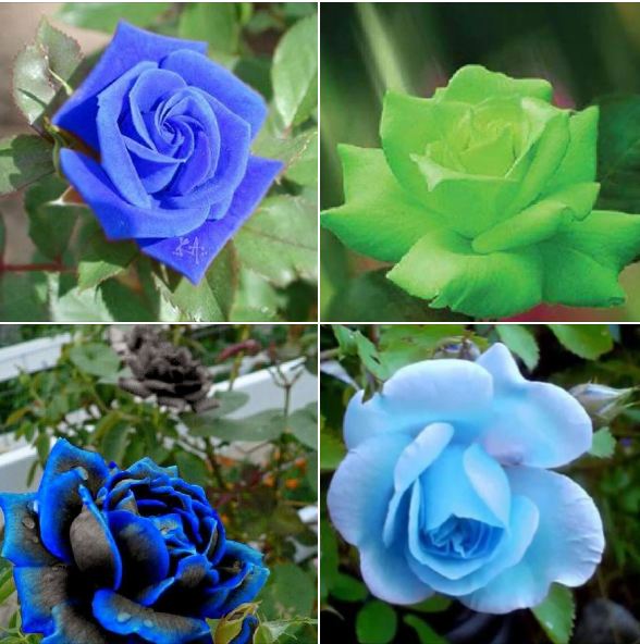 Những bông hoa hồng xanh đầu tiên là thành quả hợp tác giữa Công ty Suntory tại Nhật Bản và Công ty Florigene của Úc trong việc cấy vào hoa hồng loại gen Delphinidin tạo nên sắc tố xanh được tách ra những loài hoa có màu xanh.