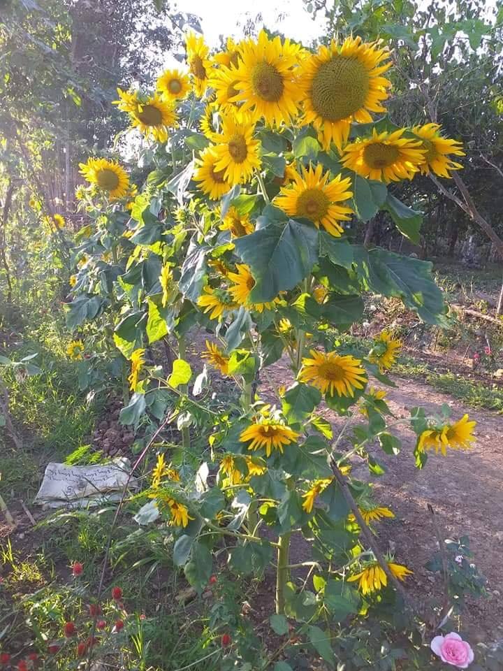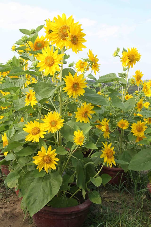 - Một cây hoa hướng dương chỉ có khoảng 1-2 bông nhưng với hoa hướng dương siêu bông thì số lượng bông có thể là 5 bông hoặc nhiều hơn tùy vào độ chăm sóc.