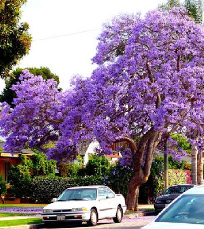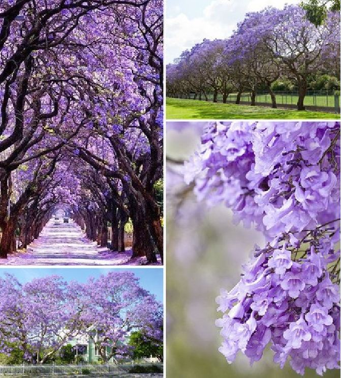 Phượng tím hay hoa Jacaranda Là cây thân gỗ,tán rộng cành thưa, thuộc họ chùm ớt. Khi không có hoa, cây tương tự như phượng vỹ, nhưng tới mùa, hoa tím biếc bao trùm khắp nơi. Hoa hình ống dài chừng 4-5 cm thành từng chùm màu tím, cánh mềm mại không giống hoa phượng vỹ. Quả phương tím ngắn dẹp, hạt nhỏ. Một mùa hoa có thể kéo dài khá lâu từ 4-6 tháng.