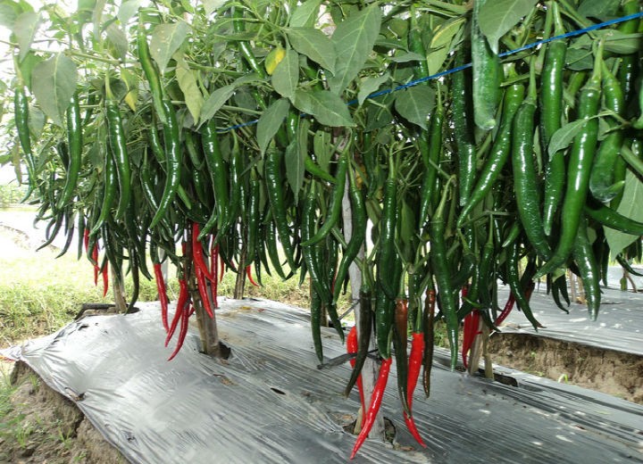 - Làm giàn: Giàn cho ớt cần sử dụng 2 dây hai bên luống để giữ cây vững và dễ thu quả, kéo dài thời gian thu hoạch và hạn chế đổ ngã.