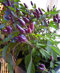 + Cây cao khoảng 15 - 20cm, trái dài chỉ thiên, trái còn non màu tím phớt xanh, khi chín màu đỏ.