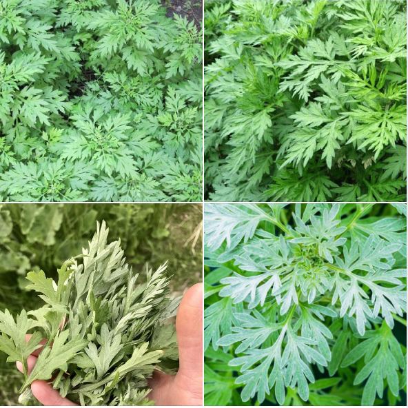 Ngải cứu là loại cây thân thảo cao sống lâu năm thuộc họ Cúc (Compositae). Nó có thể phát triển tới 1,5 mét và được hỗ trợ bởi hệ thống rễ cây thân gỗ mạnh mẽ. Các lá màu xanh xám đậm có hình lông chim, chia thùy, dài 5-20cm. Chúng có lông tơ màu xám bạc đến trắng ở mặt dưới, với thân cây mọc thẳng có màu tím.