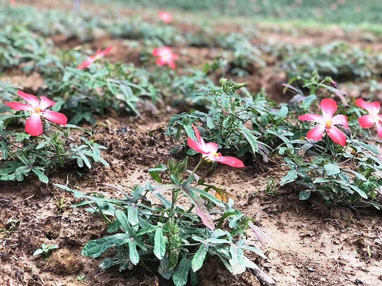 - Làm cỏ quanh góc hoặc trồng trên màng phủ nông nghiệp .Trồng với tỉ lệ 9 cây 1 mét vuông.Nếu muốn cho củ sâm bố chính to thì chọn loại đất xốm, đất phù sa.